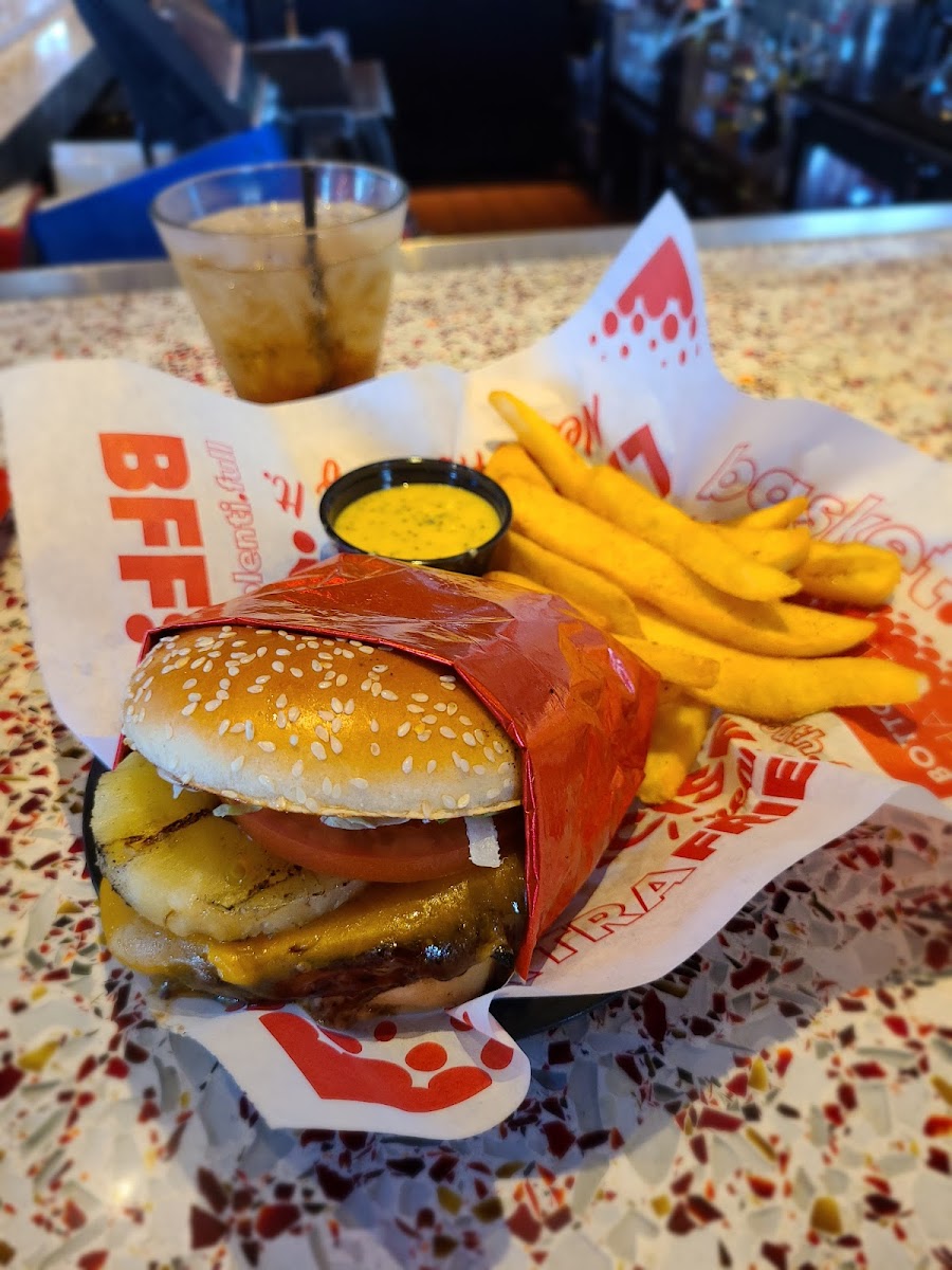 I visited this establishment today graving a burger and fries. To my surprise, they offered a special ,a double smash burger, fries and drink for $10.00. The burger was cooked to perfection, crispy edges and great flavor. The fries were hot and crispy as well. The server was pleasant and professional. Great experience. I will definitely visit it again.